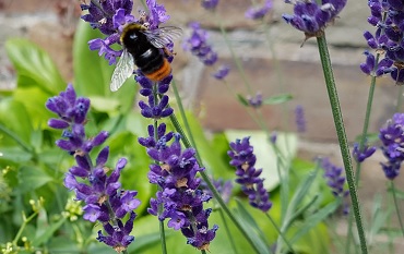 Im Sommer erreicht die Blütenpracht ihren Höhepunkt. Es blüht in allen Farben und Größen. Und dennoch leiden Bienen oftmals an Hunger, Denn es fehlt auf den Äckern oft an sogenannten Blühstreifen und in den Städten werden viele Gärten durch die Verwendung von Kies zu reinen „Steinwüsten“. Sie helfen den Bienen mit nahrungsgebenden Blumen auf dem Grab, diese pollenarme Zeiten zu überbrücken. Pflanzen Sie gern Eisbegonien oder Geranien, aber machen Sie es doch etwas bunter und nehmen noch Pflanzen aus der nachstehenden Liste hinzu. Die Bienen werden es Ihnen danken! (Foto, rechts: Ch. Kalbe, Goslar)